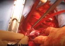 - Once the adhesions around the heart were dissected and the pseudoaneurysm assessed, cross-clamp was applied in order to reduce the ischemic time, especially in the context of severe coronary disease.
