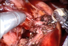 The authors mobilized a small amount of mediastinal tissue to place over the hole. Initially, they were thinking of putting a big pericardial patch over it. Because the hole ended up looking so small, they thought it would be better to minimize the amount of prosthetic material in the chest and they instead used a piece of mediastinal tissue.