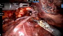 The operation was performed with the Intuitive da Vinci Si robotic system. Interestingly, during the operation the authors found a variant of venous anatomy, consisting of an aberrant venous branch leading from the posterior segment of the upper lobe to the apex of the lower lobe.