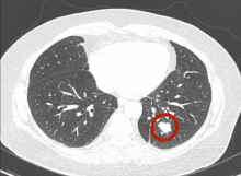 The patient was extubated in the immediate postoperative period, and she recovered from anesthesia without difficulty. The chest tube was removed on the first postoperative day and the patient was discharged uneventfully on postoperative day two. The tumor pathology revealed lung metastasis from colorectal adenocarcinoma.