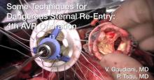 This video details how to enter the sternum when patients have undergone previous sternotomy. This patient was having his fourth sternal reentry and the CT scan showed the aorta was right next to the back of the sternum.