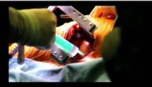 This video illustrates an alternative technique for the implantation of a left ventricular assist device (LVAD) via a bilateral mini-thoracotomy instead of a standard median sternotomy. This approach has some theoretical advantages, such as: less surgical trauma and inflammation, better compliance of the thorax, improved pulmonary function, and better right heart protection. Therefore, this approach can lead to a faster recovery with reduced overall morbidity and mortality. Additional improvement is achieved by using ECMO as circulatory support during implantation of the LVAD, as this reduces inflammation and volume shifts.