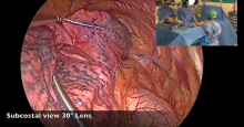 When considering the benefits of this subxiphoid biportal approach, it offers first a safe and oncologic resection. The authors emphasize the interesting subcostal view from the top, without any conflict between the camera and other instruments from the working port. It allows for tension-free stapling and dissection, in safe conditions, with classical instruments used. It is easy to remove the specimen even for voluminous tumors, and the subxiphoid tube is really painless. Finally, considering the postoperative course, this approach allows for opioid-free analgesia and importantly, it works in synergy with enhanced recovery after surgery programs for better recovery.