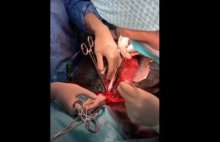 In this video, the patient underwent an extended radical thymectomy with SVC resection at the confluence of the two innominate veins, prosthetic reconstruction of the left innominate vein to the right atrium with GoreTex 10mm reinforced prosthesis, and tangential reconstruction of the SVC/right innominate vein in through a standard median sternotomy.