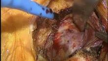 - Platysma divided, dissection between sterno-thyroid muscles to pretracheal fascia.