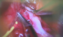 This video demonstrates surgical repair of the phrenic nerve in a patient diagnosed with right diaphragm paralysis resulting from a prior neck surgery. Intraoperative chest fluoroscopy is performed to confirm the diagnosis and assess for immediate results following phrenic nerve reconstruction. The surgical approach begins with an incision in the area of the supraclavicular fossa. Key landmarks to identify proximity to the phrenic nerve include the posterior border of the sternocleidomastoid muscle medially, the brachial plexus laterally, and the anterior scalene muscle, upon which the phrenic nerve courses. A comprehensive microscopic neurolysis of the phrenic nerve and upper cervical roots is performed.