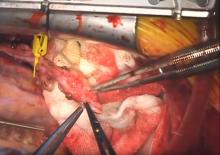 A 65-year-old man was admitted with acute inferior wall myocardial infarction, and echo revealed moderate left ventricular dysfunction. He was stabilized on medical treatment. An angiogram showed severe triple vessel disease, and the authors recommended anaortic CABG using bilateral internal mammary arteries. Both internal mammary arteries were harvested and partially skeletonized. LIMA-RIMA composite Y grafts were constructed using 8-0 prolene sutures. The left atrial appendage was plicated to facilitate graft placement. The following anastomoses were performed: the RIMA was placed to the ramus, the OM1, and the PDA; the LIMA was placed to diagonal 1, diagonal 2, and the LAD. In effect, a total arterial complete revascularization was performed using bilateral internal mammary arteries.