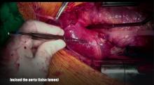 This video illustrates a novel technique for repairing a type A aortic dissection. The anastomoses were easily completed with the use of vascular ring connectors. An elephant trunk was inserted into the proximal descending thoracic aorta using a guidewire-pulling technique.