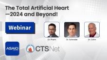 CTSNet hosted a joint webinar with ASAIO Journal on November 16, 2023 featuring a group of enthusiastic and industry-pushing professionals to discuss the topic, "The Total Artificial Heart—2024 and Beyond!" Panelists included Dr. Duc Pham [3], Associate Professor in the Department of Surgery at Northwestern University Feinberg School of Medicine; Dr. Jacob Schroder [4], Assistant Professor in the Division of Cardiothoracic Surgery at Duke University; and Dr. William Cohn [5], Director of The Center for Technology and Innovation at the Texas Heart Institute.