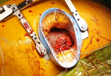 The NeoChord DS 1000™ system consists of a single-use device which allows the capture of the valve leaflet, as well as the deployment of artificial expanded polytetrafluoroethylene chords. It can be inserted and removed multiple times so that the surgeon can implant as many chords as desired. The jaw of the device has four fiber optic sensors, which allows for confirmation of an adequate tissue grasping using an external display.