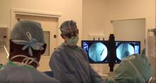 This video shows a patient who was suffering from manubrium nonunion after a mini aortic valve replacement. The nonunion caused significant pain and clicking. The patient was a heavily built male and CT scanning showed several fragments, which suggested that simple plating would be ineffective. Femoral bone marrow is an ideal medium to induce good union and is used in many other areas of chronic nonunion. The orthopedic department joined the case and harvested bone marrow from the right femur with the Reaming-Irrigation-Aspiration (RIA) system. Two clavicular plates were placed across the area of nonunion to hold the manubrium together until union was achieved. The team was very satisfied with the results. At two months postoperative, the patient was pain free and had a stable union.