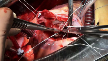 The procedure involves partial resection of the diseased anterior leaflet to facilitate proper examination of the subvalvular components. At times, resection of the posterior leaflet is also necessary to enable repair through bicuspidization of the new valve. Prior to fully resecting the leaflet, several Gore-Tex sutures are applied to the belly and tip of the papillary muscles.