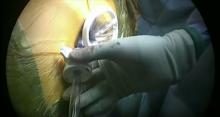 This video shows a uniportal subxiphoid lobectomy in a patient with a proven adenocarcinoma of the middle lobe. The author demonstrates patient positioning, how to make the port, the lobectomy, lymphadenectomy of station 4R and station 7, and how to close the subxiphoid port. Novel pieces of equipment to make the operation easier are also shown.