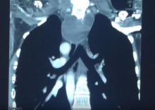 An 18-year-old asymptomatic male patient was diagnosed with a retroesophageal cyst. The authors performed cyst drainage via a uniportal VATS approach.