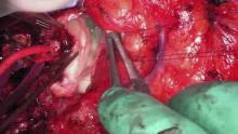 This video presents a twenty-two-year-old male born with congenital aortic stenosis secondary to a bicuspid aortic valve who had two previous sternotomies. He received an initial open aortic valvotomy at three weeks old.This was followed by Ross procedure with ascending aorta replacement when he reached fifteen. He developed severe right ventricular outflow tract obstruction secondary to pulmonary homograft dysfunction and calcifications. This is in addition to the progressive autograft root dilation. There was trivial autograft valve regurgitation.