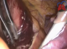 The authors proceeded with left triportal technique, nonselective orotracheal intubation, and CO2 insufflation at low pressure in the pleural cavity: 6 mm hg and 6 lts under flow. The authors used 30-degree optics.